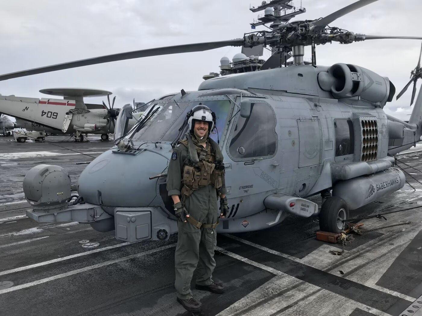 2020年 Zach Rodriguez 少校在直升机旁的照片,太平洋巡役开启了他的加密货币学习之路。
