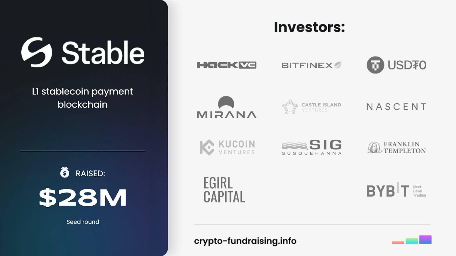 Stable 已从 HackVC、 Bitfinex 、USDT0、富兰克林邓普顿等投资者那里筹集了总计 2800 万镁。