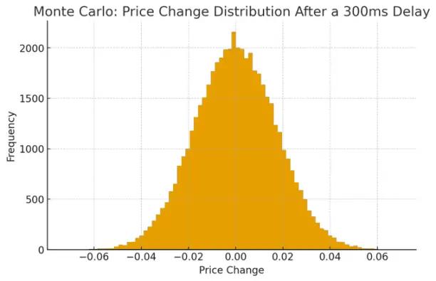 也就是说,在 300 毫秒内,仅市场的随机波动就会导致价格平均移动 0.15–0.30 个基点。