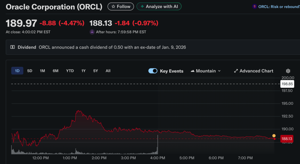 尽管说法强硬,市场仍选择以卖单回应。从 9 月以来,甲骨文股价已从高点下跌约 40%。