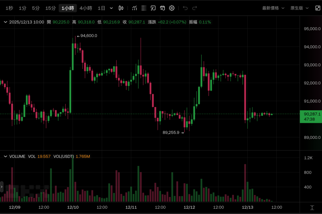 加密货币市场同步遭遇卖压,比特币在接近 0 点左右快速跌破 9 万美元,截稿前暂报 90,287 美元、以太坊则力守在 3,000 美元之上。