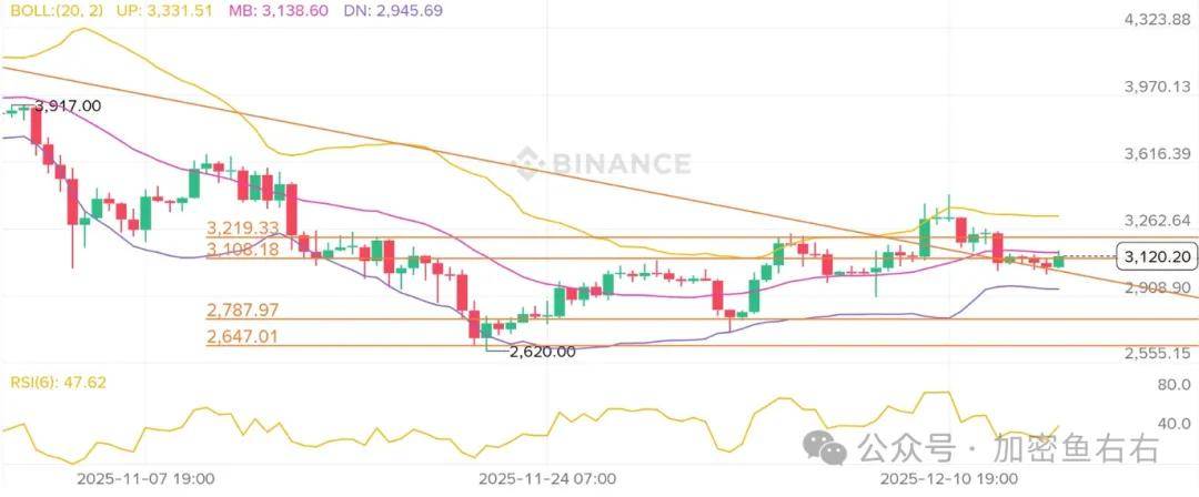 (2)ETH3050附近有一定支撑,跌破则3k失守。反弹的力度越来越小,3100以上或跌破3044加仓空,不到不补。