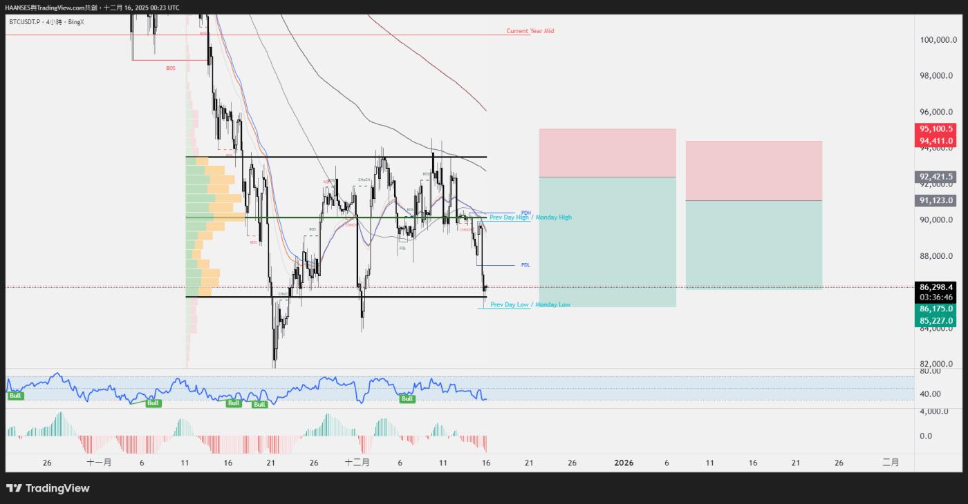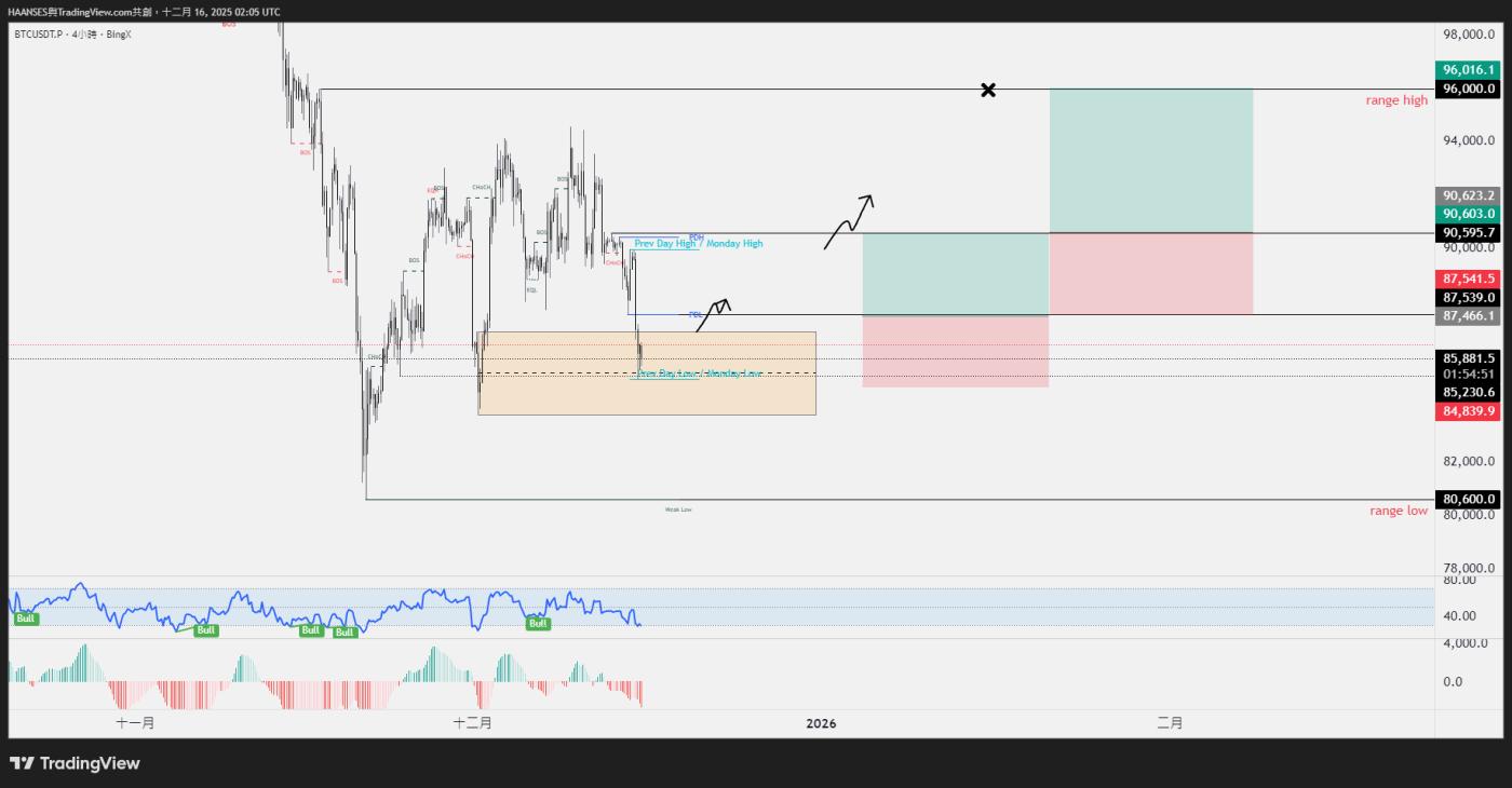 2.等到91000再决定,撑住那就有机会上去拿掉区间高点的流动性,没撑住,就一路下去拿区间低点