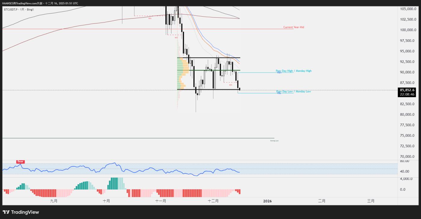 但空头占优势所以我们不会希望看到拿掉区间低点才反弹,因为如果要拿掉区间低点代表行情真的太弱,有可以能就一蹶不振继续下去了,我们期待看到的是在橘色区域得到支撑,并把PDL(PRE DAY LOW)拿回站稳