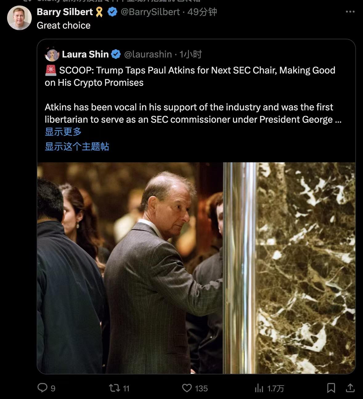 美国证券交易委员会(SEC)主席保罗·阿特金斯于2025年12月15日在加密货币工作组第六次圆桌会议上发表了具有里程碑意义的演讲,阐述了与前任主席加里·根斯勒截然不同的加密货币政策愿景。阿特金斯警告说:“如果政府的本能是将每个钱包都视为经纪人,将每款软件都视为交易所,将每笔交易都视为需要报告的事件,将每个协议都视为便捷的监控节点,那么政府最终会将这个生态系统变成一个金融全景监狱。” 这标志著与2021年至2024年主导的以执法为主导的策略截然不同。