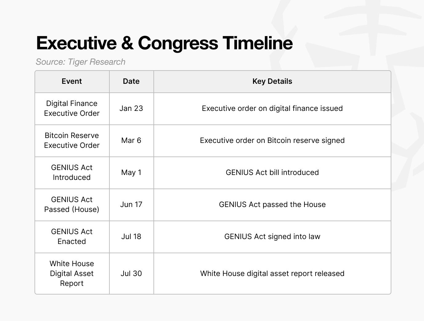 2025年,随着特朗普政府的上台,美国加密货币政策迎来了一个重大转折点。行政部门、国会和监管机构同步采取行动,其目标是降低市场不确定性,并将加密货币融入现有的金融体系。