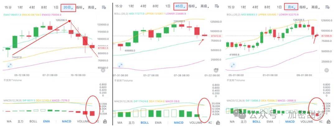 btc月线boll中轨88800这周跌穿,现在已经变成压力,所以再看45日线boll中轨,对应77250。所以这月抄底78800-77250先进个头仓。
