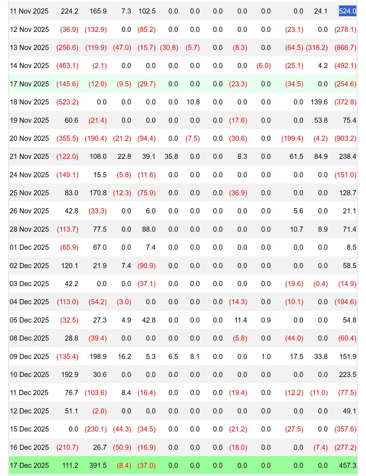 此次复苏是在经历了11月和12月初的剧烈波动之后出现的,当时资金流向在少量流入和大量提取之间反复逆转。比特币ETF上次录得超过4.5亿镁的资金流入是在11月11日,当时这些基金单日吸引了约5.24亿镁的资金。