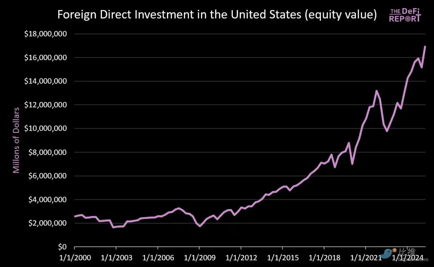 · 自 2000 年 1 月 1 日以来:美国资本市场流入了超过 14 万亿美元(这还没算上目前外国人持有的 9 万亿美元债券)。