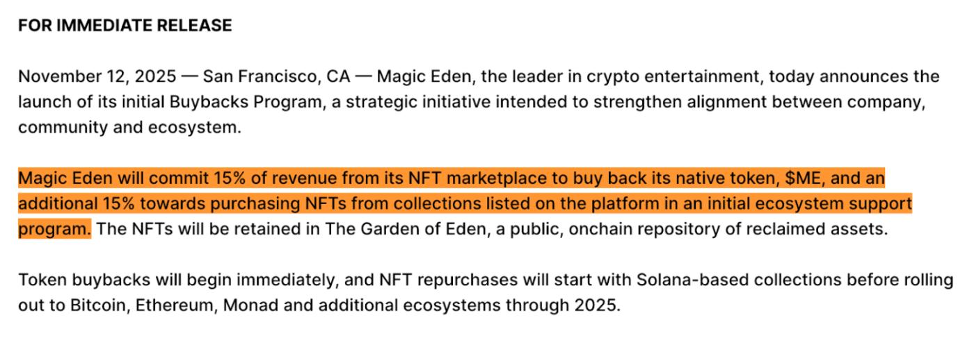$ME 代币回购(占收入的 15%):公司直接从市场回购 $ME 个代币。这与股票回购类似。减少流通供应量会对代币价值产生上行压力。