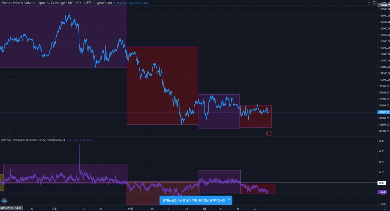 🪙 (2025.12.27) 年末放松一下 📱 (2025.12.16) Kobe Premium 又要遭殃了 📱 (2025.12.17) (2025.12.17) 屏息以待的第一天 在金价回升之前,让我们撑住~撑住~ 负值已经持续了相当长一段时间。看来美国大家都在休息,那我们也休息一下吧~ 📱 使用 Coinbase Premium 安全交易 赞与爱对 BQ 内容的支持非常重要🤩 #KQ #CoinbasePremium #BTC $BTC #ETH $ETH