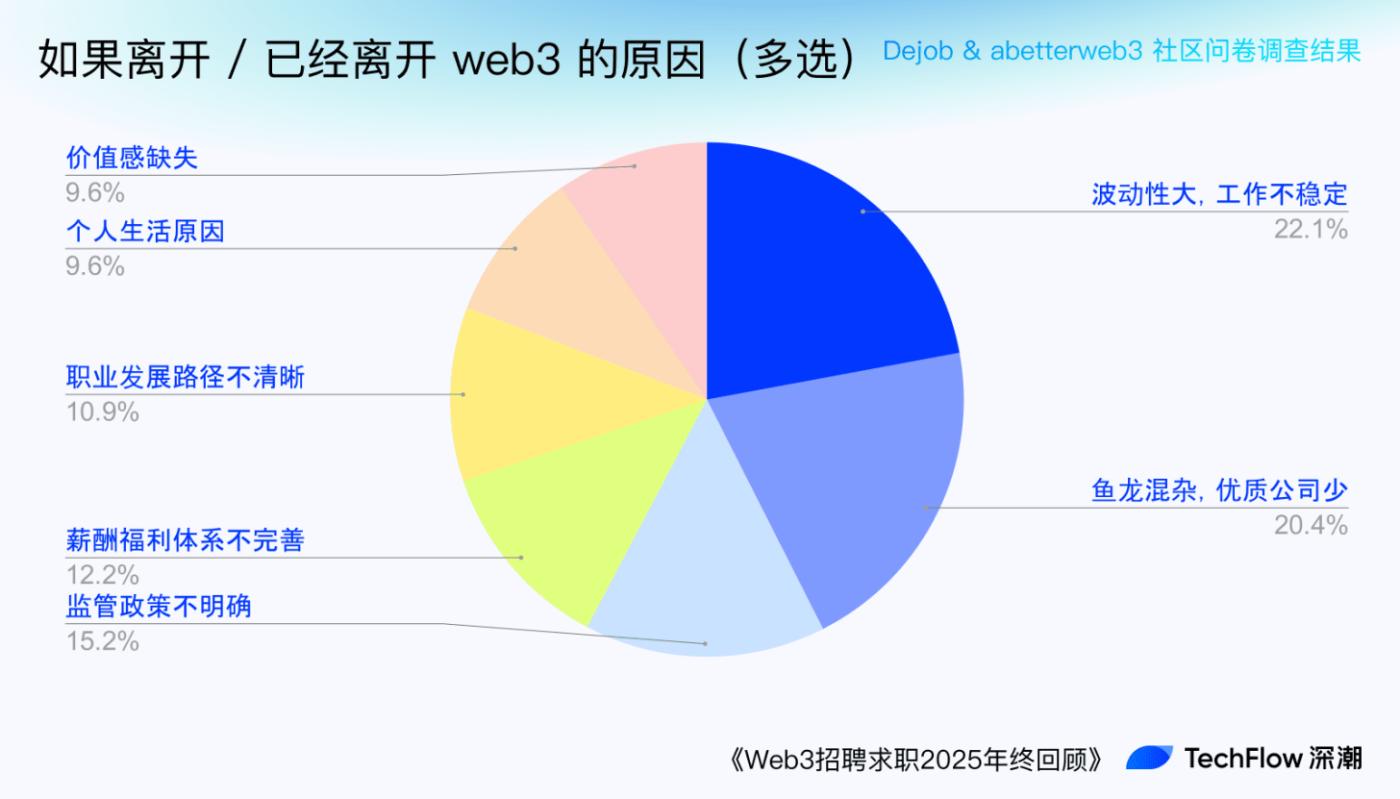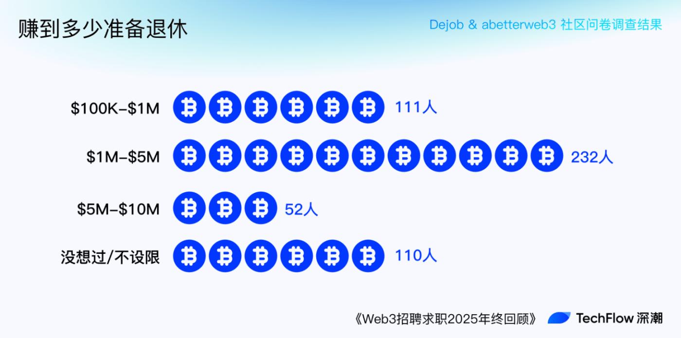 即便如此,仍有超过 80% 的人选择继续留在这个行业。这种执着背后,既有对财富自由的执念,也有对远程工作、弹性工作等生活方式的认同,更有一种 “all in” 之后无法回头的无奈。行业的真实底色,是从互联网大厂转行的中年人,是刚毕业但找不到好工作故扎进币圈的年轻人,是在多个项目间腾挪的自由职业者。这里不见密码极客们的乌托邦,只见一个充满不确定性、一息尚存的围城。
