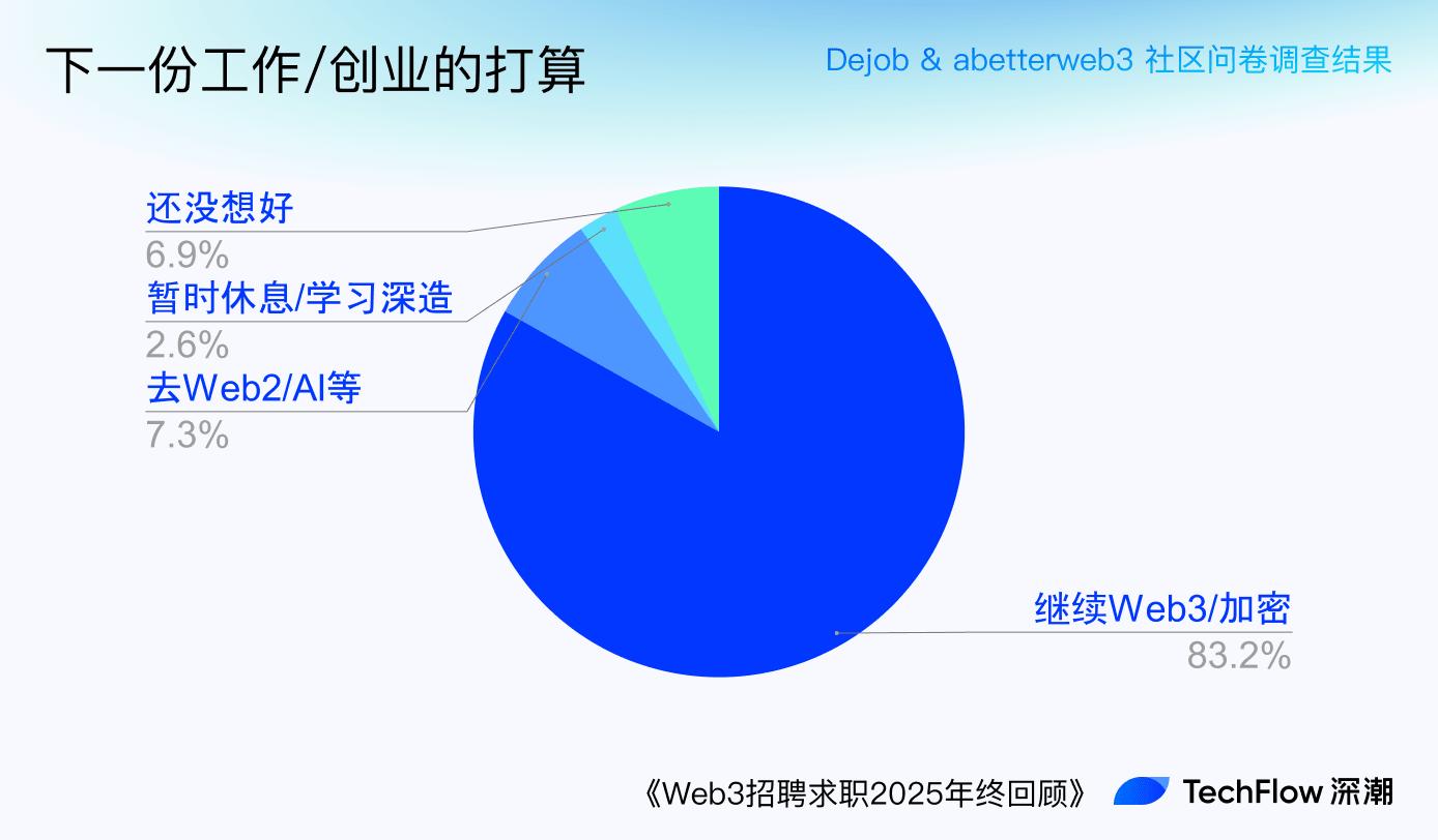 对于下一份工作是否还是在币圈,有超过 80% 的人选择留下,也有 7% 的人选择离开。