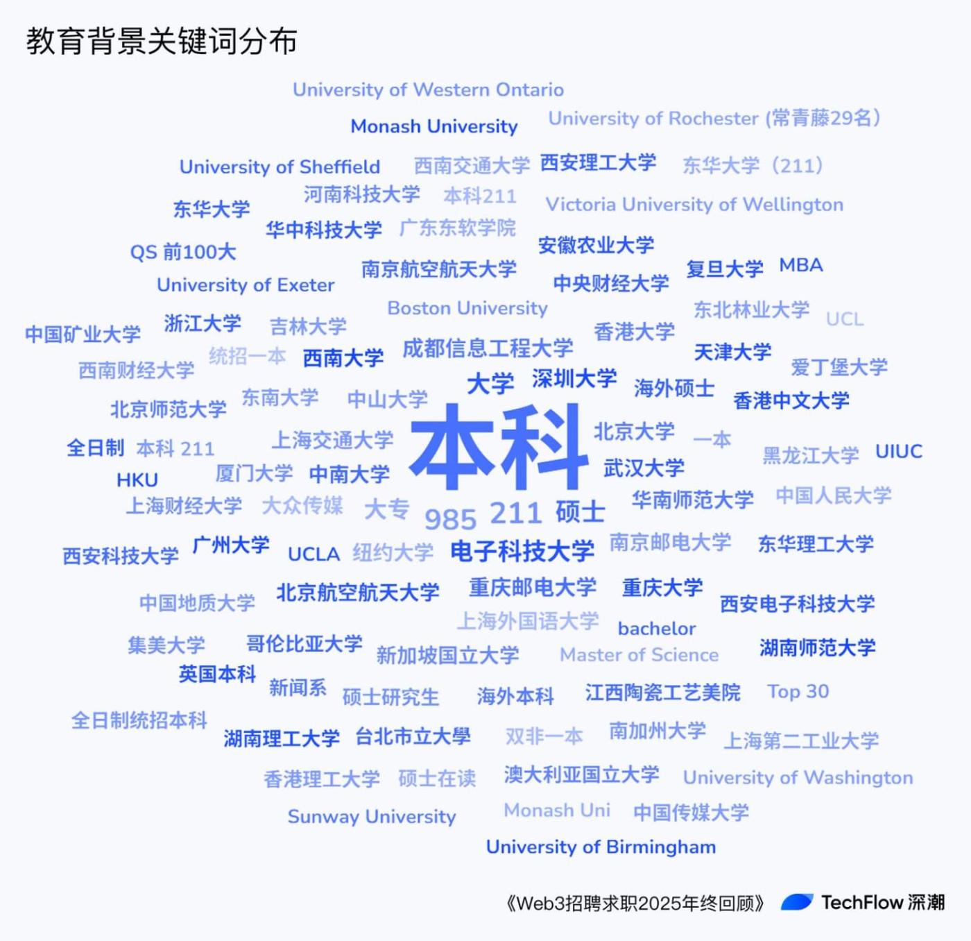 说明 Web3 行业目前仍然更看重能力,没有饱和到用学历卡死上升通道的地步。