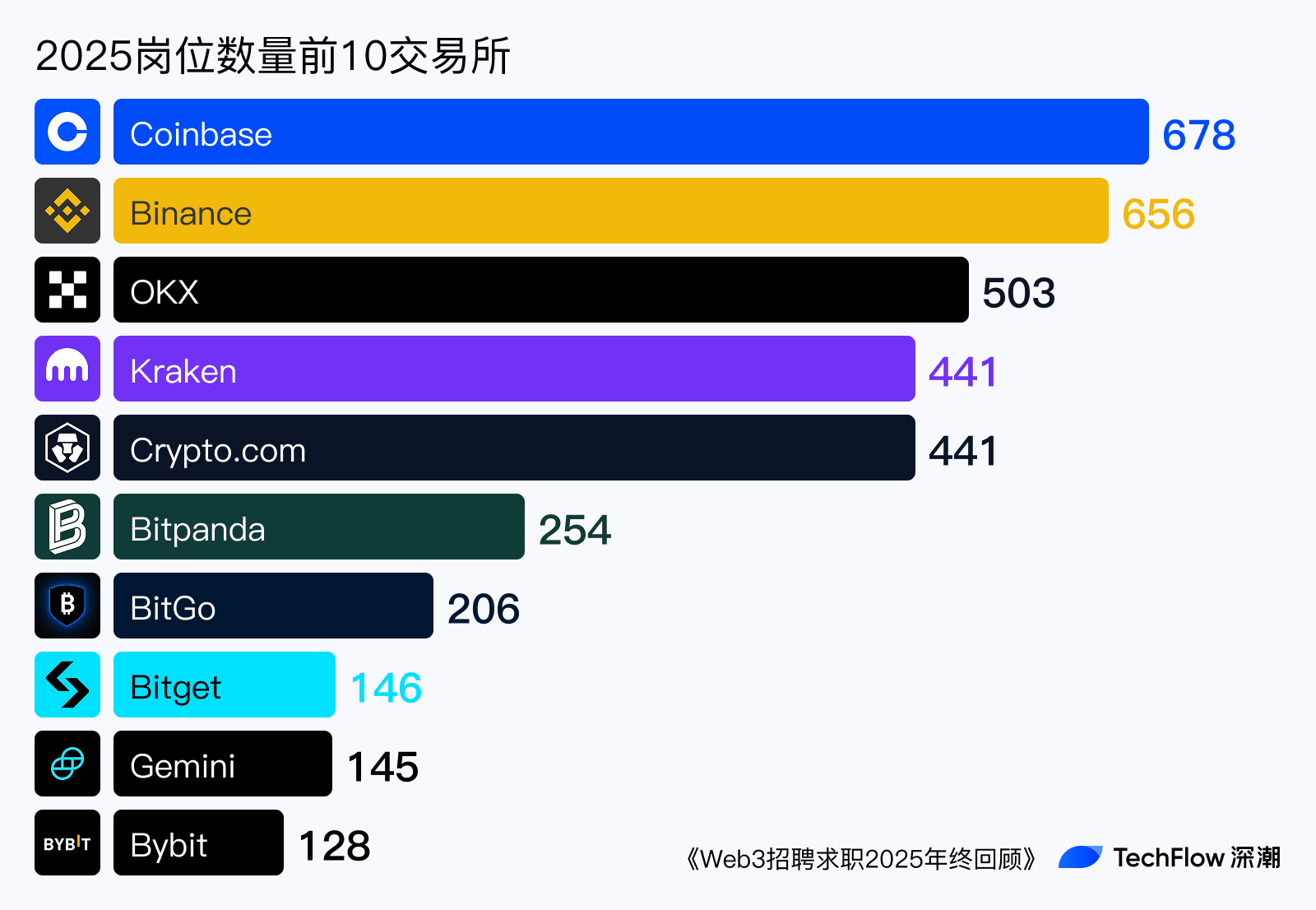 综合各渠道,2025 招聘发布量前 10 的交易所是: