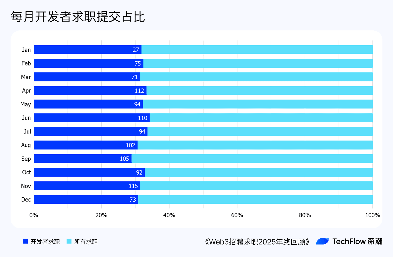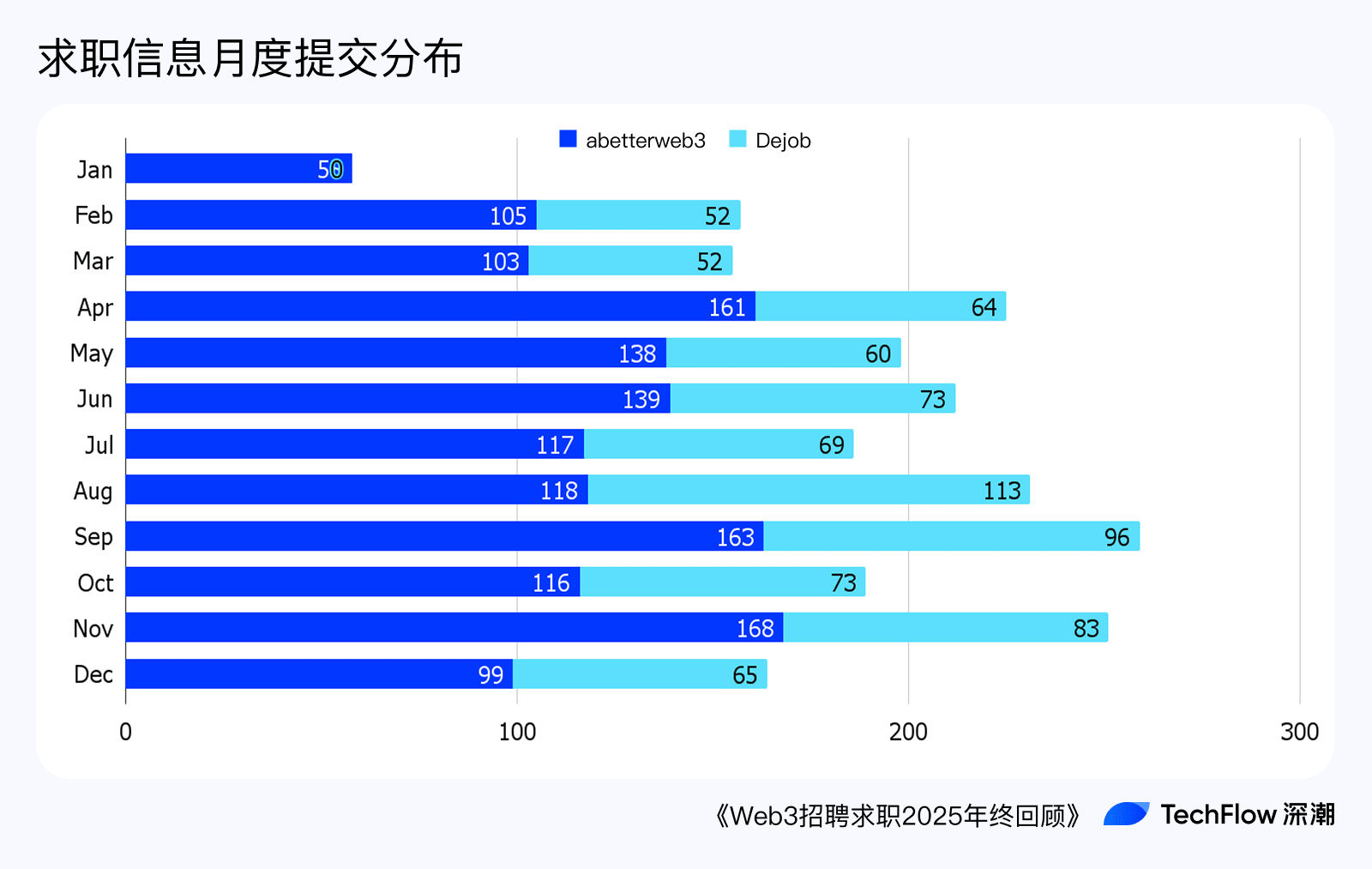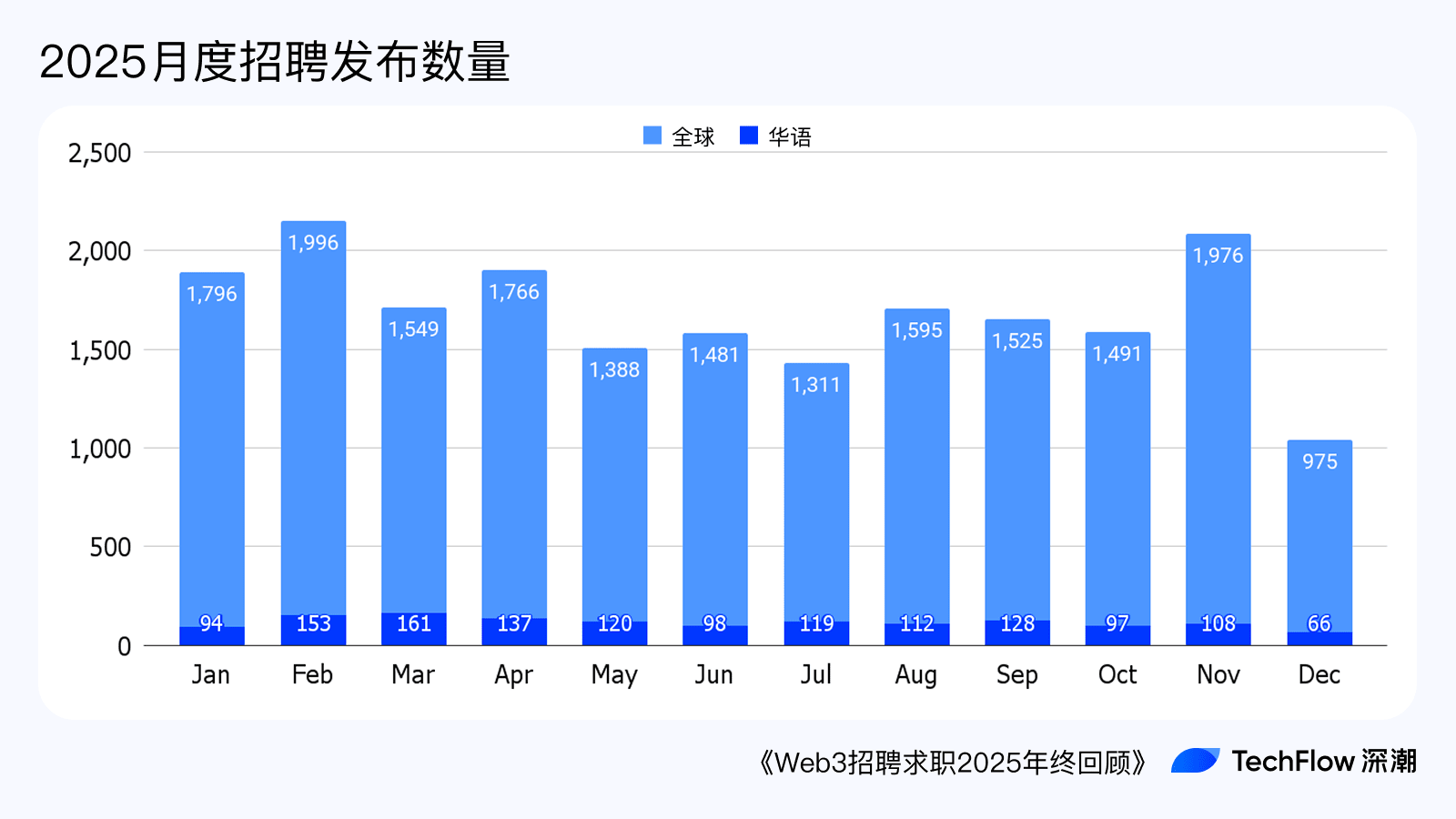 2025 年 Web3 招聘市场全年波动不大,但部分月份的变化可以反映出一些常见的招聘趋势。