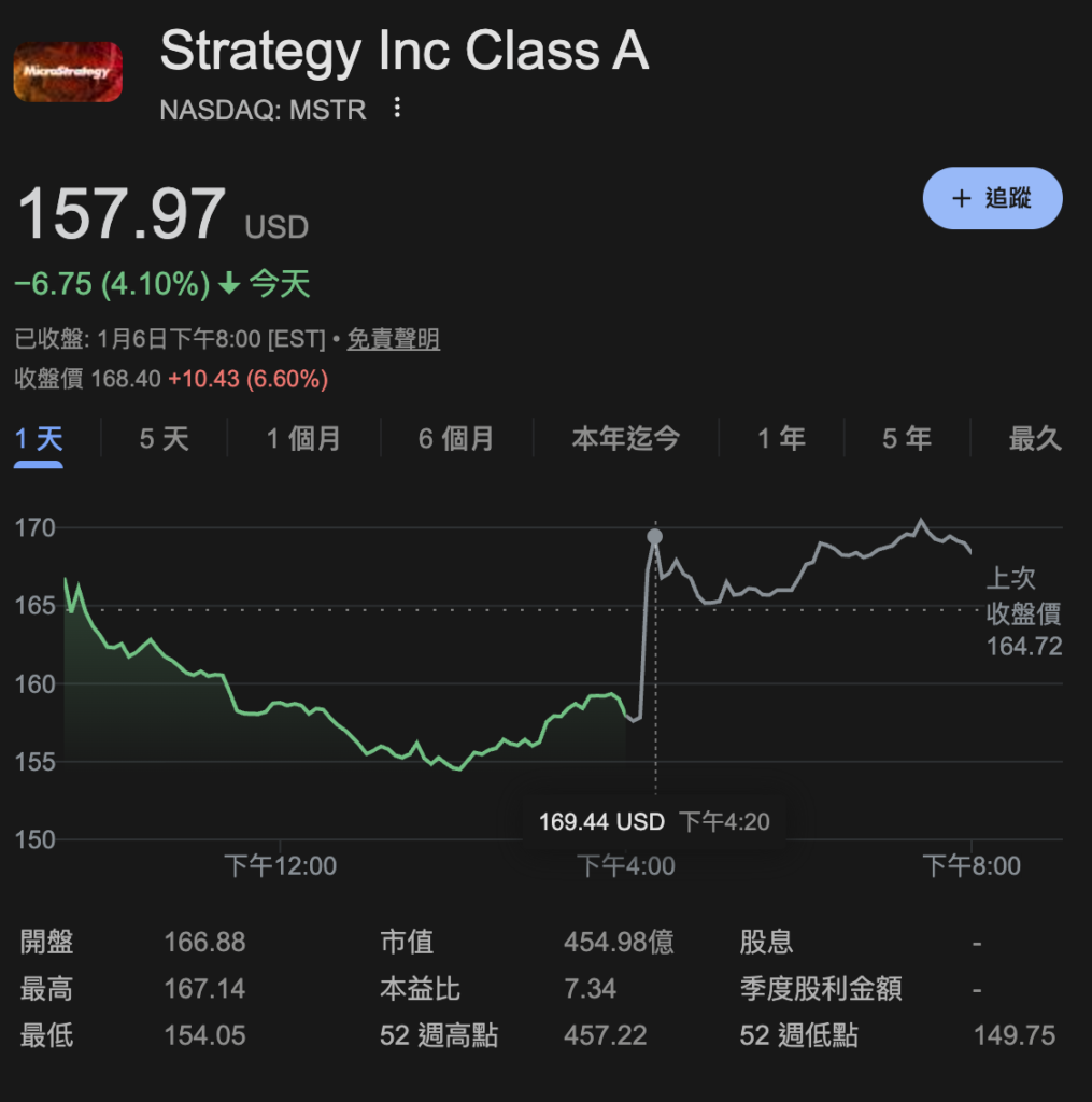 对 Strategy 这类股票而言,进出指数不仅关乎声望,更直接连接全球被动资金流。数据显示,若 50% 规则生效,仅 Strategy 就可能遭追踪 MSCI 指数的 ETF 强制卖出约28 亿美元股票,整体板块资金外流上看 150 亿美元。事件公布后,Strategy 股价从 158 美元附近迅速反弹,市场的交易动态说明,指数席位有时比短期基本面更能主导价格。