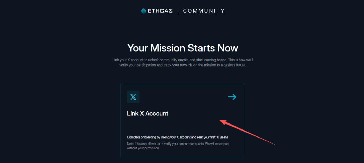 STEP 1. 进入交互网站(链接:https://www.ethgas.com/community/onboarding/),绑定个人 X 账号。