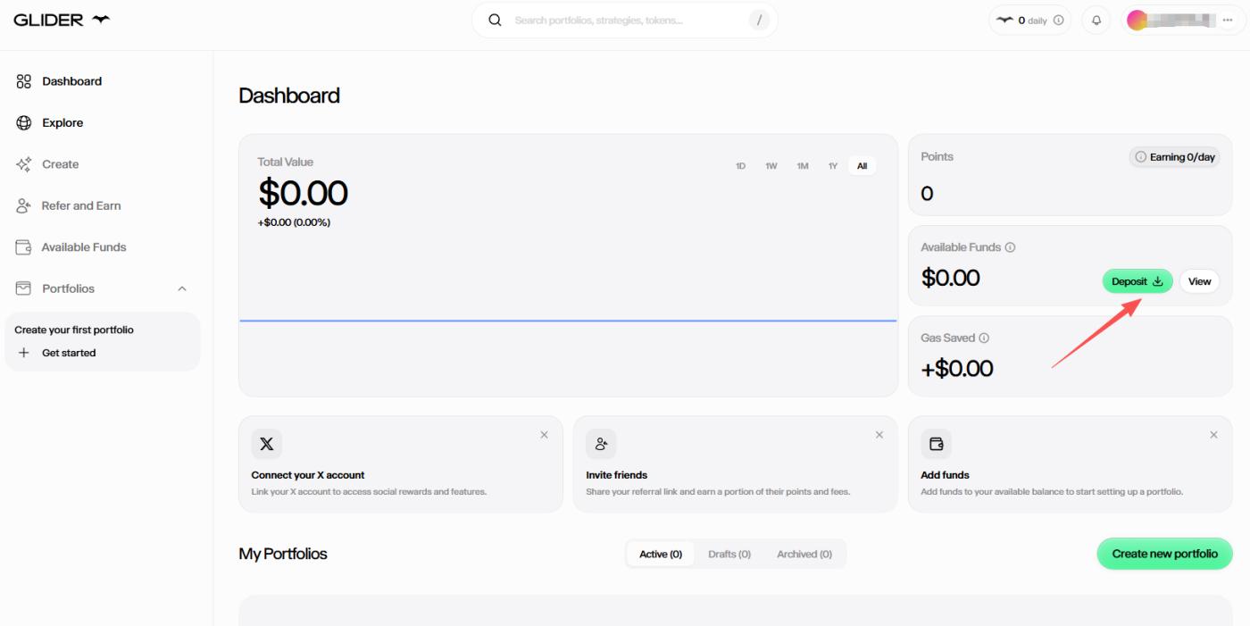 Glider 是一个 AI 自动化投资管理工具,专注于简化 DeFi 复杂性。2025 年 7 月初宣布已启动积分计划,积分将从 7 月 1 日开始计算,每存入 1 美元每天可获得 1 积分,此外可通过创建投资组合等方式获取更多积分。