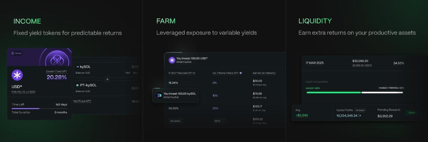 2025 年10 月 23 日,Perena 宣布启动 Season1 积分活动,目前仍可以 Perena 前端(链接:https://app.perena.org/rewards)使用稳定币铸造 USD* 并持有即可累积积分,同时获取约 13.32% 的 APY,也可进阶通过 RateX、Exponent 组 LP 或是买 YT 来探寻更多的收益可能性。