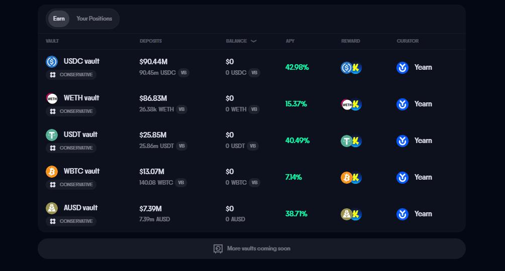Katana 是由 Polygon Labs 与加密交易公司 GSR 联合推出的 DeFi 专用区块链,主网已于去年 7 月初上线。Katana 现已支持用户存入 USDC、USDT、AUSD、ETH、WBTC 等资产,且该项目已宣布将提供 10 亿枚原生代币 KAT 作为流动性激励。