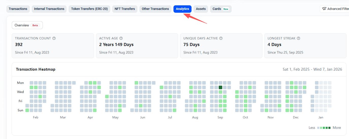 一方面,进入 Base 网络区块链浏览器,查看个人地址活跃程度。