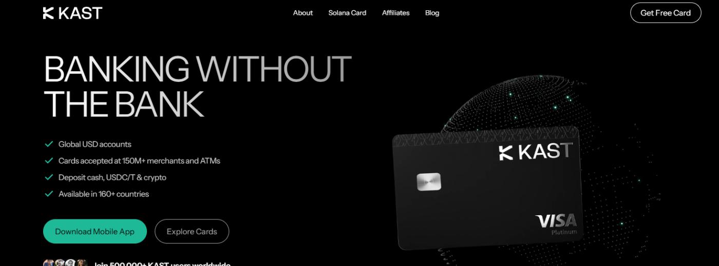 KAST 是一个以美元计价的类似新银行的平台,允许客户通过传统支付渠道持有和使用稳定币。Kast 还发行与标准商家网络兼容的信用卡,使用户可以在不支持加密交易的商家处使用其持有的稳定币。