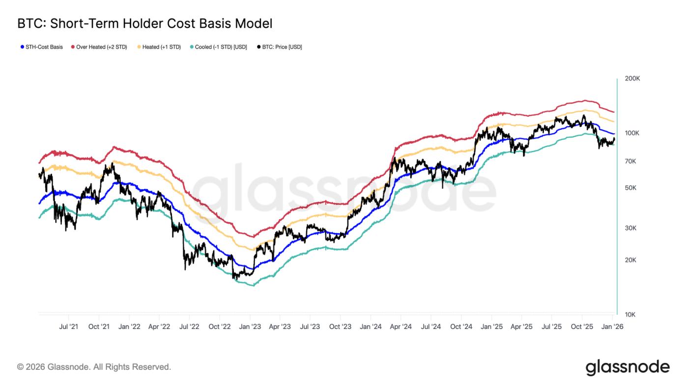 在面临上方套牢盘压力的同时,判断近期反弹能否真正扭转此前下跌趋势、进入持续需求驱动的阶段,需要借助可靠的价格分析框架。短期持有者成本基础模型在这一过渡时期尤为重要。