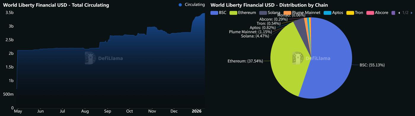 USD1 总市值曲线及各链占比 | 图源:DeFiLlama