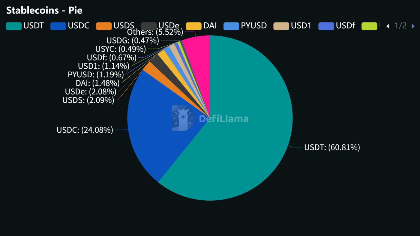 各稳定币市值占比 | 图源:DeFiLlama