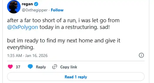 Polygon 没有这种入口。它 2024 年也裁过一次员,当时裁了 20%,那次是熊市收缩,大家都在砍人。