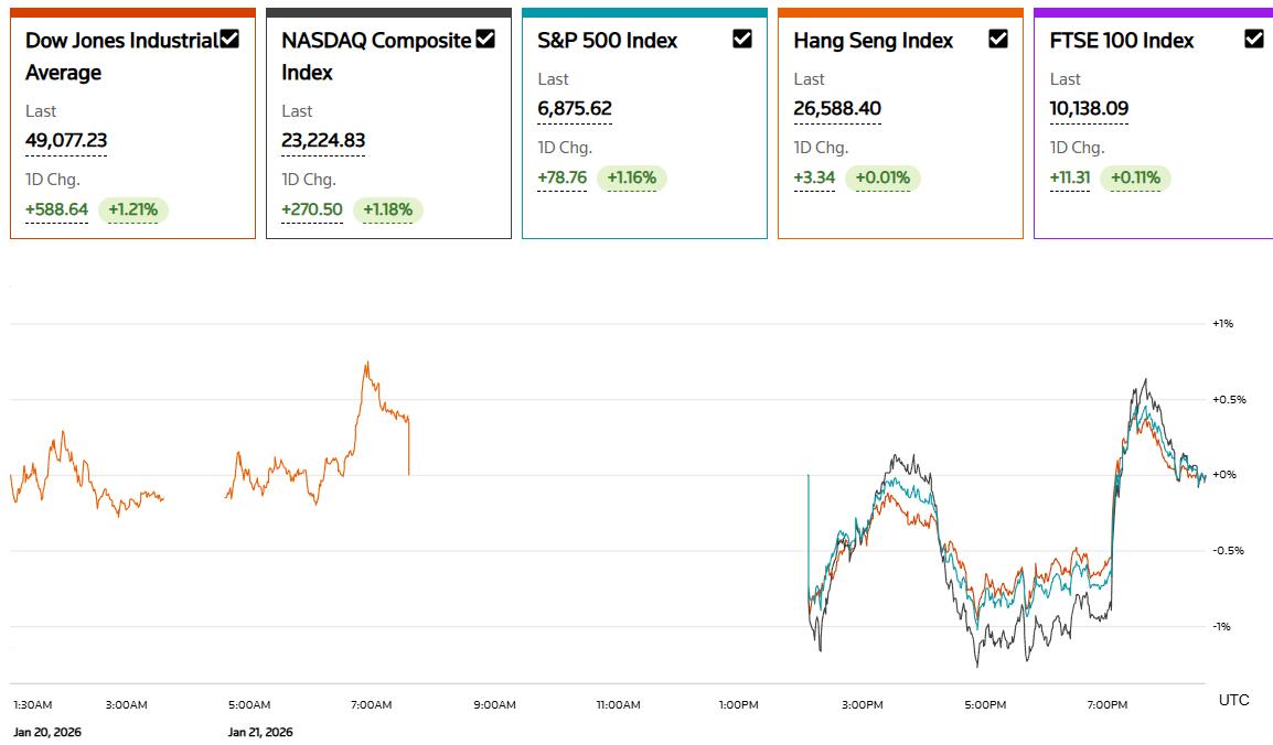在唐纳德·特朗普确认美国将暂停原定于2月1日对欧盟商品加征关税后,全球风险情绪骤然转变。此前,美国已就格陵兰岛及更广泛的北极安全安排与北约进行了初步协调。这一逆转消除了年初市场面临的最严峻的地缘政治隐患之一。据路透社和彭博社报道,特朗普强调美国不会就格陵兰岛采取强制性的经济或军事措施,而是将此次谈判结果描述为旨在对抗俄罗斯和中国在北极地区影响力的战略对话。市场迅速将此解读为近期贸易和安全风险的显著降低。