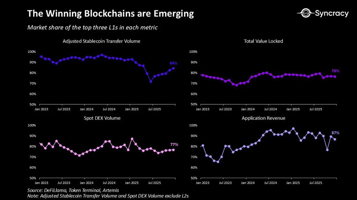 在此背景下,获胜的区块链正在崛起,成为互联网的货币和金融基石。以太坊、Solana 和 Hyperliquid 的网络效应与日俱增,并由其不断壮大的资产、应用、业务和用户生态系统所锚定。它们的无许可设计和全球分发能力,使其应用成为全球增长最快的业务之一,拥有无与伦比的资本效率和收入周转速度。长远来看,这些平台很可能成为支撑“金融超级应用”潜在市场规模的基础,而几乎所有领先的金融科技公司都在竞相争夺这一市场。