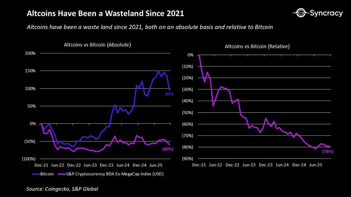 在经历了长达四年的山寨币熊市后,市场情绪跌至谷底。顶级项目的长期机会被错误定价(低估),鲜有分析师在模型中预测其指数级增长。