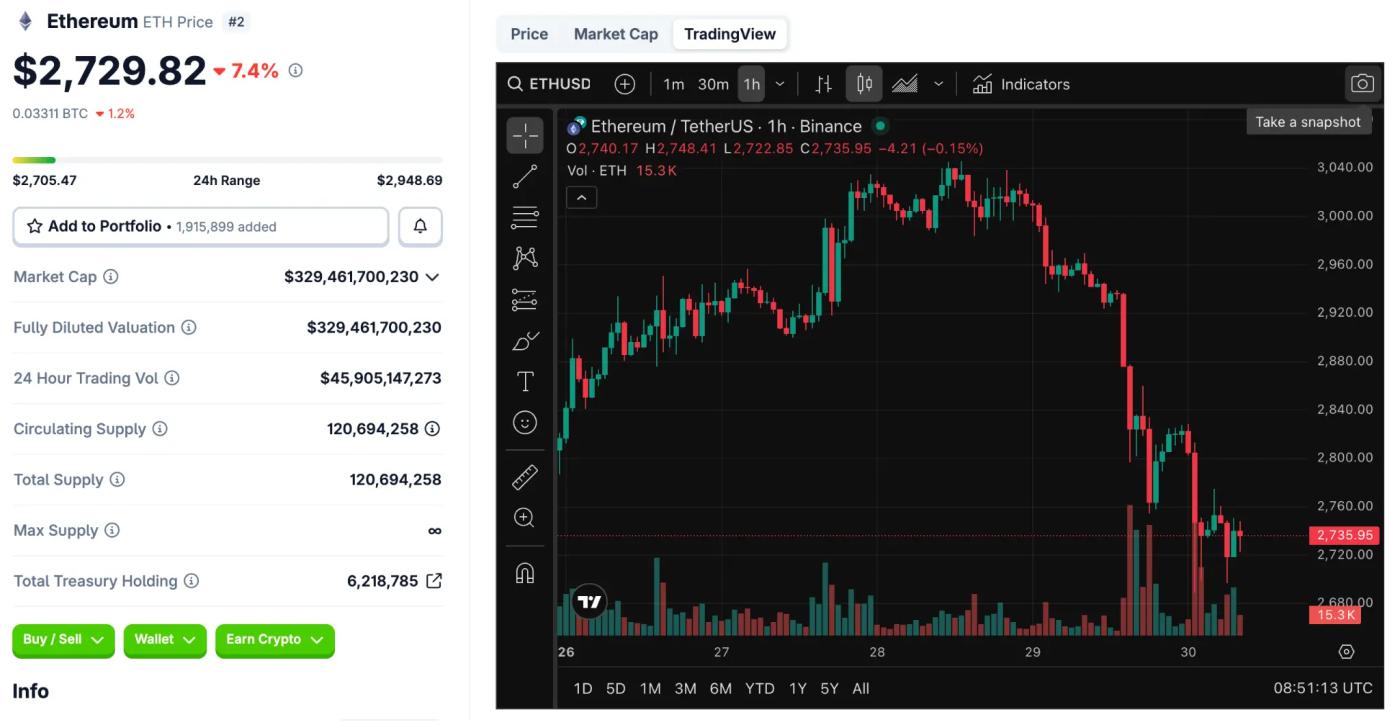 同时,以太坊单日下跌超过 7%,交易价格跌至 2,729 美元附近。除了这两大主流币种,其他市值排名前十的加密资产也普遍遭遇 4% 至 6% 的跌幅。