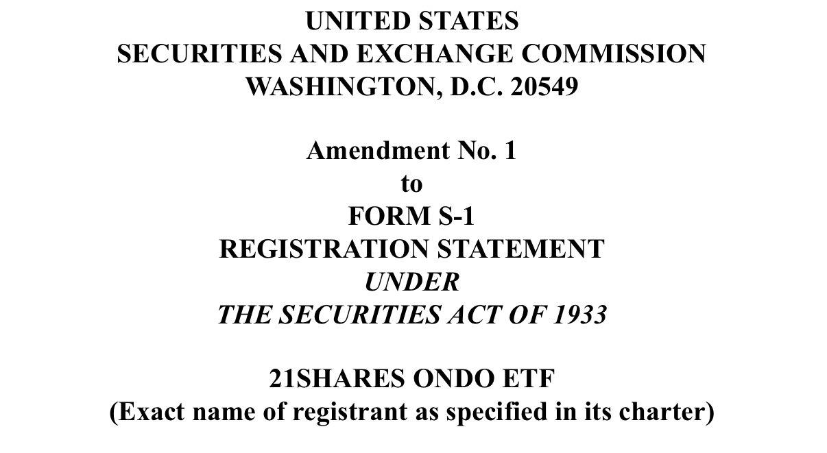 彭博分析师:21Shares 已提交 Ondo ETF 申请