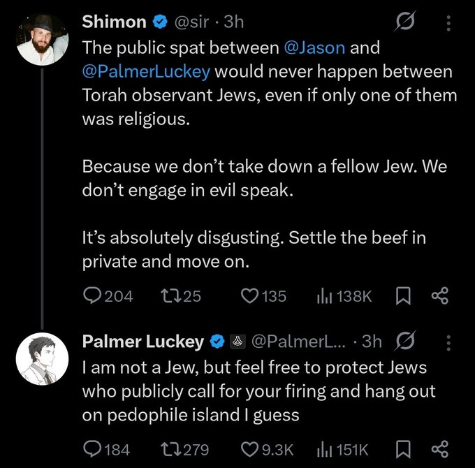Because Jason is *not* smarter than Palmer, Luckey will continue to expose his history of associating with Jeffery Epstein for the public to decide (with a $10M bet no less). x.com/PalmerLuckey/s…