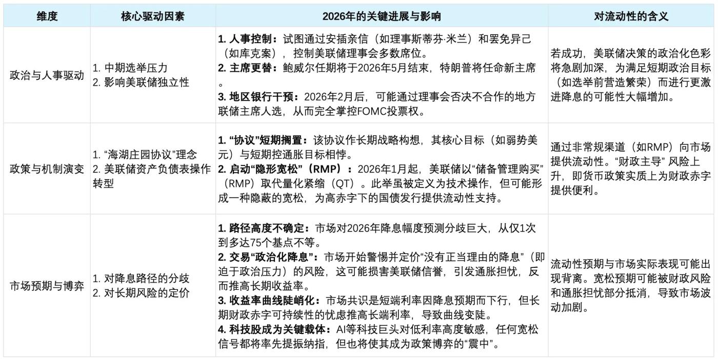表4:2026年美国流动性环境:核心驱动、进展与影响