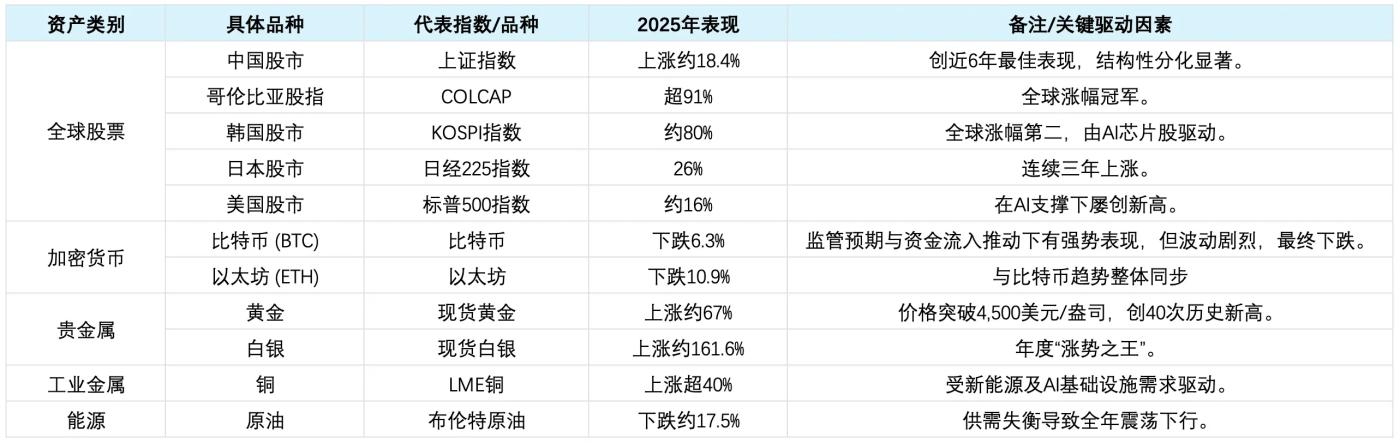 2025年全球金融市场在人工智能(AI)浪潮的席卷下呈现出显著的“科技牛市”特征。盛宴之下,加密货币市场却呈现出显著的“遇冷”与背离态势。其核心原因在于宏观滞胀风险与突发性黑天鹅事件的双重压制,完全覆盖了市场结构深化(机构化、合规化)带来的长期利好。2026年多重基本面、宏观政策与地缘政治变量正在悄然生变,预示着2026年的投资环境可能更为复杂。