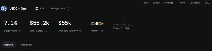 @SiloFinance 上的新金库于 $S @SonicLabs。 USDC供应年利率 7%。听实习生的👇