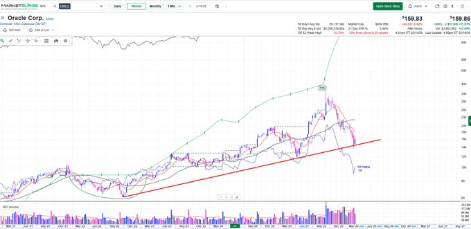 与 $MSFT 类似,$ORCL 近期的大幅回调并未对 2022 年以来的中期趋势造成破坏,尽管动能仍然相当疲软。 虽然我对软件板块可能反弹感到鼓舞,但考虑到许多板块回调幅度之大,我认为这并非易事。 重建遭受重创的板块需要时间,而许多人纷纷跳出来声称 SaaS 板块已经触底,这多少有些令人担忧。 此外,软件板块跌破了自 2007 年以来相对于同等权重技术板块的长期支撑位。这绝非玩笑。请重新阅读 来自 @IBDinvestors 和 @marketsurge 的最新图表
