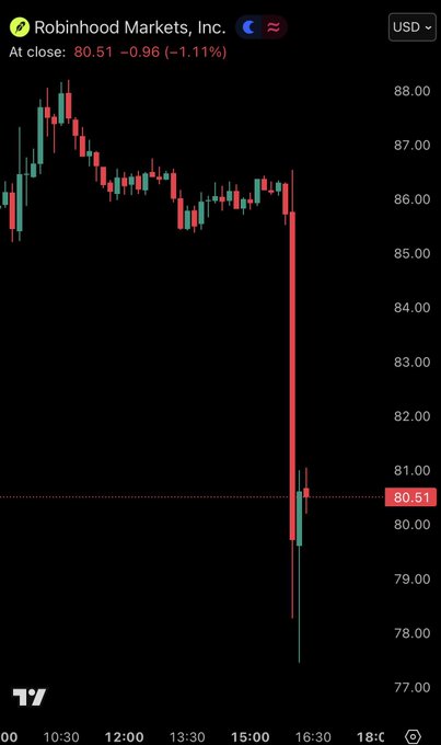 The Kobeissi Letter本文为机器翻译展示原文突发新闻:Robinhood 股票 ($HOOD) 公布 2025 年第四季度营收低于预期,股价下跌近 10%。Robinhood 2025 年第四季营收为 12.8 亿美元,比分析师预期的 13.4 亿美元低 4.5%。来自推特免责声明:以上内容仅为作者观点,不代表Followin的任何立场,不构成与Followin相关的任何投资建议。喜欢收藏 评论分享相关推荐ODAILY黄金一度跌超4%、白银暴跌11%,美股大跌引爆算法交易贵金属卖盘?PANewsMeme退潮,叙事趋冷:失守80美元,Solana的周期红利结束了?BNB2.76%All-in stationCoinbase报告的财报表现平平,导致其股价下挫。BTC1.5%