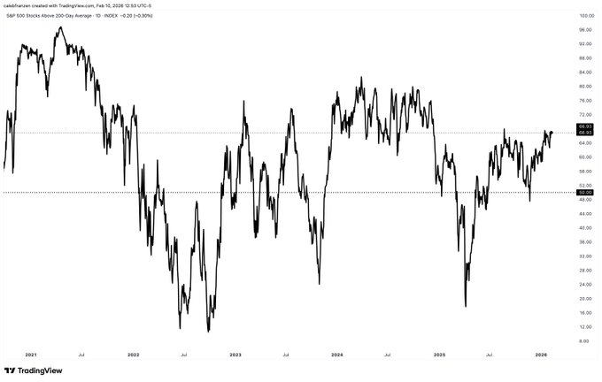 Caleb Franzen本文为机器翻译展示原文标普500指数中67%的股票价格高于其200日均线。来自推特免责声明:以上内容仅为作者观点,不代表Followin的任何立场,不构成与Followin相关的任何投资建议。喜欢收藏 评论分享相关推荐ODAILY黄金一度跌超4%、白银暴跌11%,美股大跌引爆算法交易贵金属卖盘?PANewsMeme退潮,叙事趋冷:失守80美元,Solana的周期红利结束了?BNB2.8%All-in stationCoinbase报告的财报表现平平,导致其股价下挫。BTC1.46%