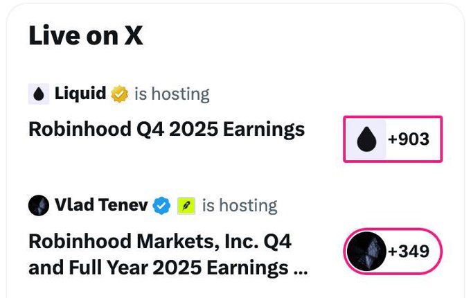 rain ✶本文为机器翻译展示原文比 Robinhood 财报电话会议的观看次数还多。 流动性强。来自推特免责声明:以上内容仅为作者观点,不代表Followin的任何立场,不构成与Followin相关的任何投资建议。喜欢收藏 评论分享相关推荐ODAILY黄金一度跌超4%、白银暴跌11%,美股大跌引爆算法交易贵金属卖盘?PANewsMeme退潮,叙事趋冷:失守80美元,Solana的周期红利结束了?BNB2.76%All-in stationCoinbase报告的财报表现平平,导致其股价下挫。BTC1.5%