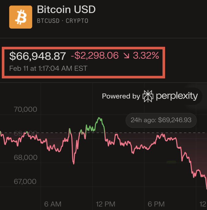 突发:比特币价格回落至 67,000 美元以下,加密货币抛售压力再度来袭。