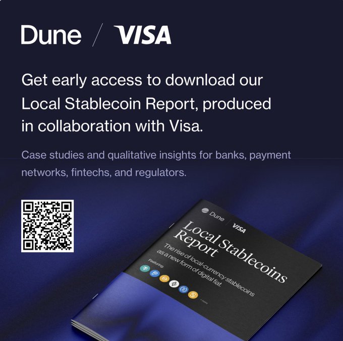 Dune本文为机器翻译展示原文最新消息:Dune 与 Visa 合作推出本地稳定币报告,重点关注全球 200 多种非美元支持的稳定币的增长情况。 此次发布还附带目前最全面的机构级稳定币数据集,该数据集由 Dune 与 SteakhouseFi 合作构建。 专为企业团队设计,可扩展。注册抢先体验 bit.ly/DuneStablecoin来自推特免责声明:以上内容仅为作者观点,不代表Followin的任何立场,不构成与Followin相关的任何投资建议。喜欢收藏 评论分享相关推荐Foresight News1 天赚 8 万,这位顶级玩家把 Polymarket 当提款机BTC0.96%PANewsMeme退潮,叙事趋冷:失守80美元,Solana的周期红利结束了?BNB2.31%All-in stationCoinbase报告的财报表现平平,导致其股价下挫。BTC0.96%