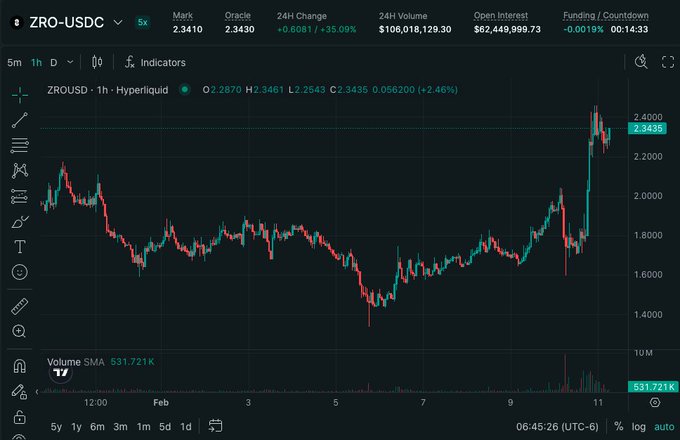 自昨晚零链发布以来,ZRO 已上涨 35%。