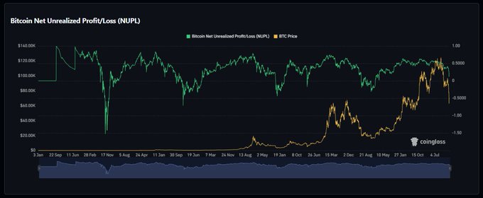CryptoBusy本文为机器翻译展示原文比特币的NUPL正在回归中性区域🚨 该区域通常出现在下一个主要趋势行情之前的周期中期调整阶段。相关赛道:减产概念Layer 1来自推特免责声明:以上内容仅为作者观点,不代表Followin的任何立场,不构成与Followin相关的任何投资建议。喜欢收藏 评论分享相关推荐ODAILY黄金一度跌超4%、白银暴跌11%,美股大跌引爆算法交易贵金属卖盘?PANewsMeme退潮,叙事趋冷:失守80美元,Solana的周期红利结束了?BNB2.77%All-in stationCoinbase报告的财报表现平平,导致其股价下挫。BTC1.44%