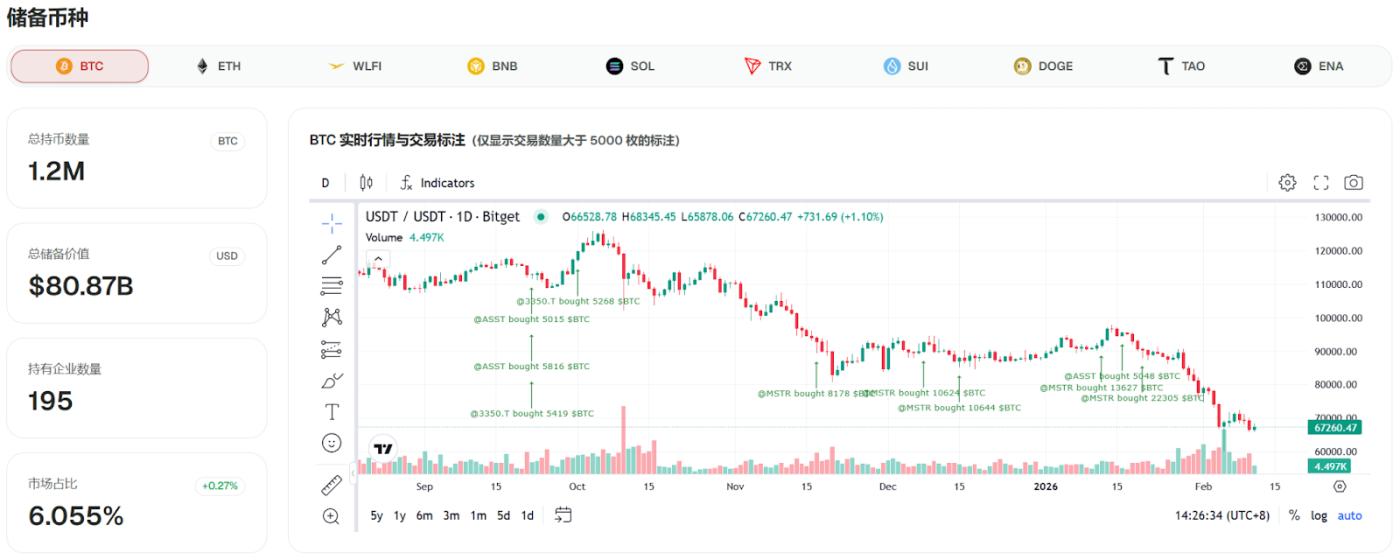 据 CoinFound 数据显示,目前 195 家上市公司合计持有 1206554 枚 BTC,占比特币总量的 6.06%。其中,Strategy Inc(MSTR)持币 714644 枚 BTC,占上市公司总持仓的 59.23%。