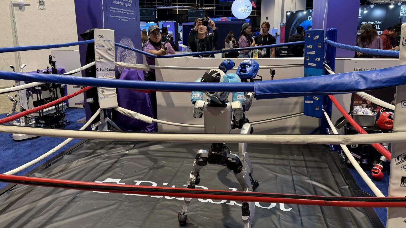 Consensus 会场上两个机器人正在拳击